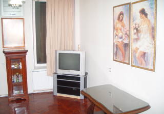 the third floor of a three storied building. Bedroom is supplied with a double bed. Bathroom is bath / toilet. Kitchen-studio has all necessary things for cooking. Living-room has double hidden sofa. Equipped with refrigerator, phone for city calls, dvd player, TV-set(cable TV), computer with Internet connection,plates and dishes, coffee maker, nice furniture, iron, washing-machine, hot and cold water, own water heating, air-conditioner, coffee machine,oven, microwave. More photos The price: 60 USD for one day Book