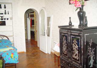 the second floor of a three storied building. Two bedrooms supplied with middle size double beds and two sofas. Bathroom is bath / toilet. Kitchen-studio has all necessary things for cooking.Equipped with refrigerator, phone, TV-set(cable TV),plates and dishes, nice furniture, washing-machine, hot and cold water, oven. More photos The price: 90 USD for one day Book